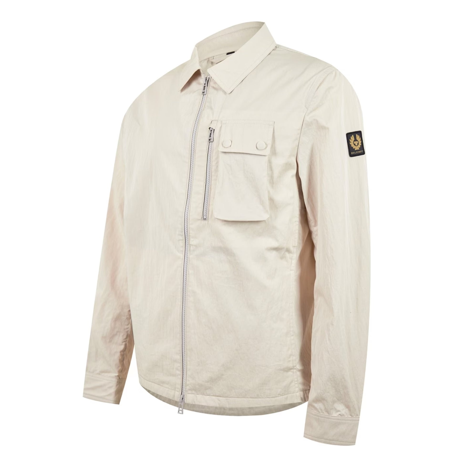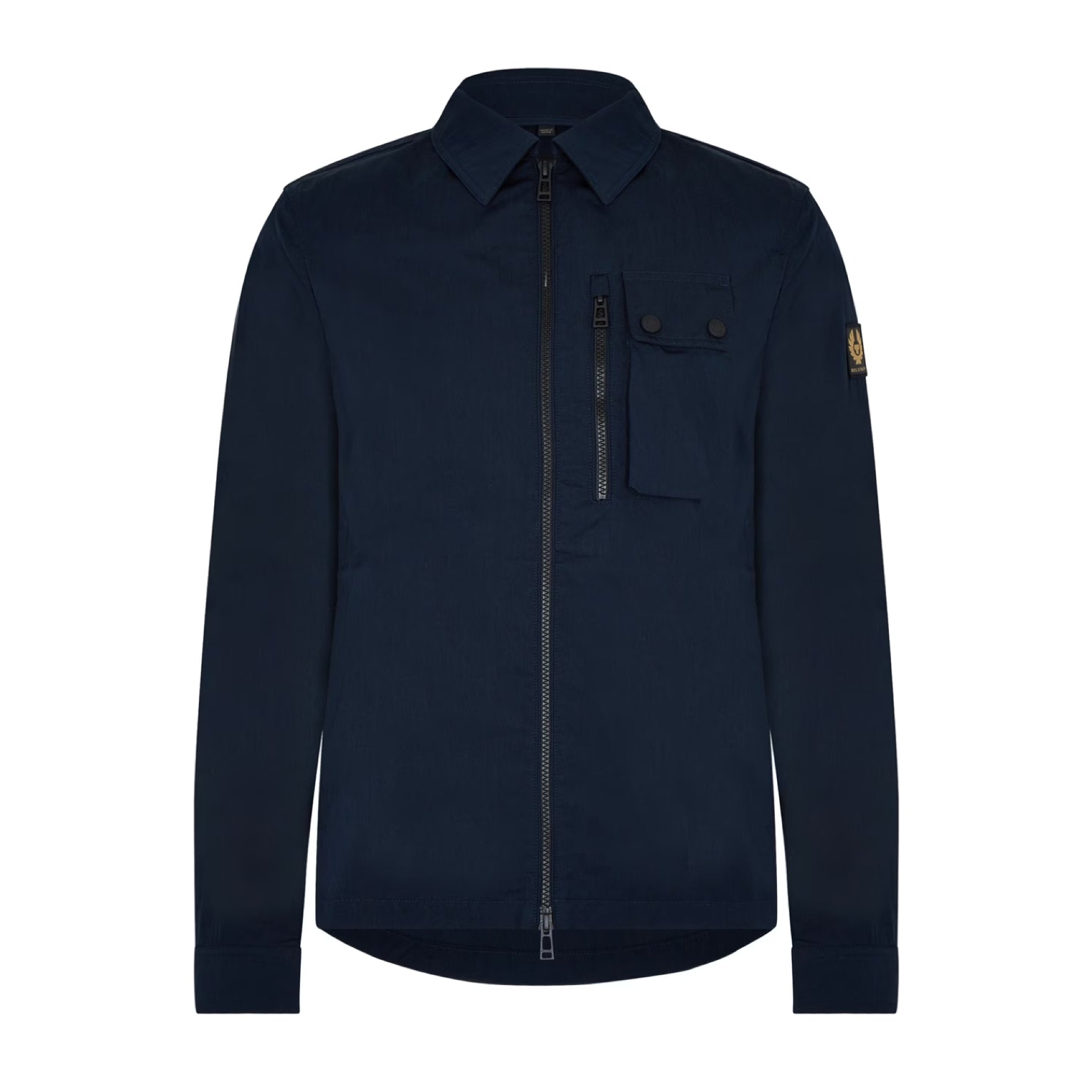 The Belstaff Rail Overshirt is crafted from lightweight polycotton gabardine. Featuring two-way zip fastening, classic pointed collar, full length sleeves, press stud fastenings and underarm vents for temperature control. This stylish piece has side slip hand pockets, zipped and buttoned flap pockets and the iconic Belstaff logo rendered on the left sleeve. Enjoy a high-end finish and optimal comfort wherever your day takes you.