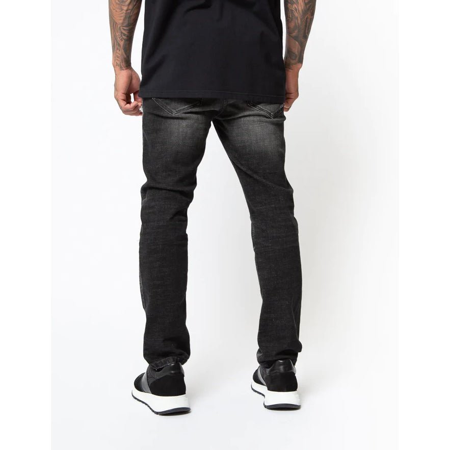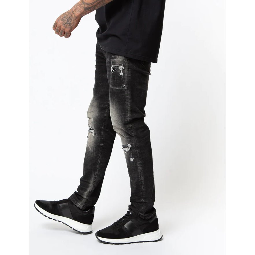 Valere Combi Jeans feature a slim fit with a washed black and distressed look. Made ethically and sustainably, each pair is a statement piece with a Valere branded button, rivet, and back patch. Experience luxury, style, and comfort in every wear.