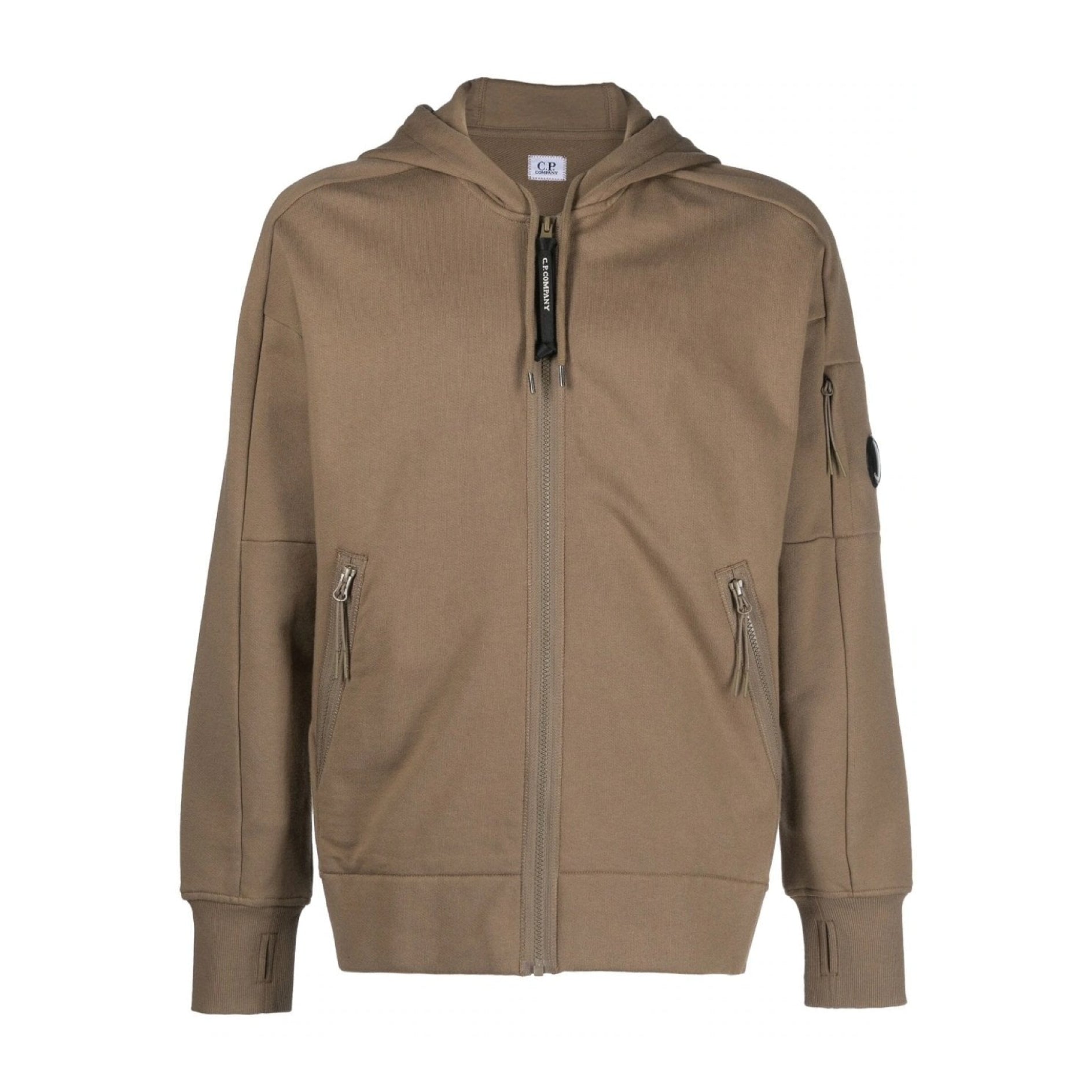 Keep warm and fashionable with the CP Company Zip-Through Hoodie. It features signature lens detailing on the left arm, a CP Company Logo on the hood, convenient front zip pockets, long sleeves, and a straight hemline for a great fit.