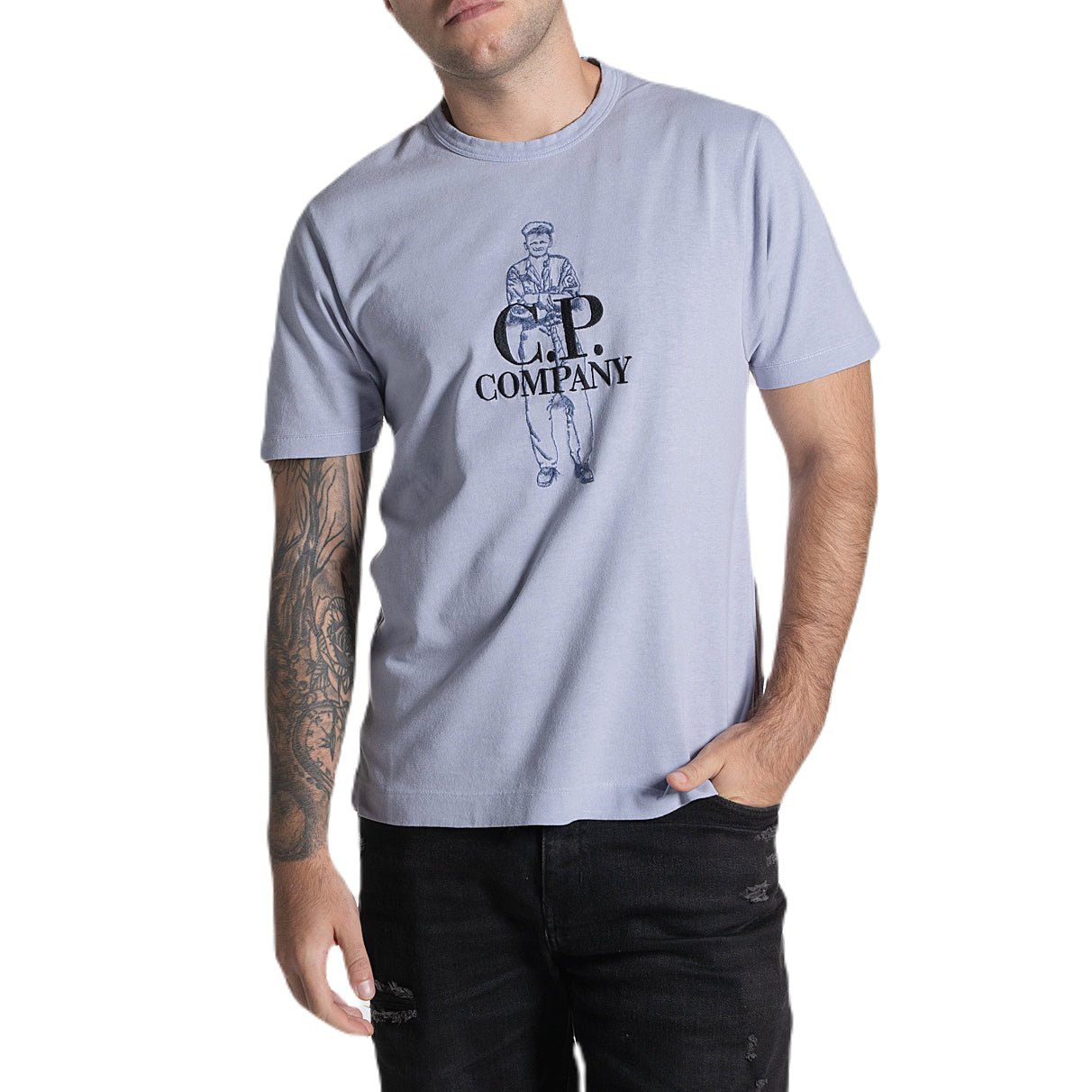Introducing the latest in CP Company's graphic staples - the Jersey British Sailor T-Shirt. Made with a comfortable crew neck and short sleeves, this tee features unique graphics on the front. Perfect for a quirky and stylish look.