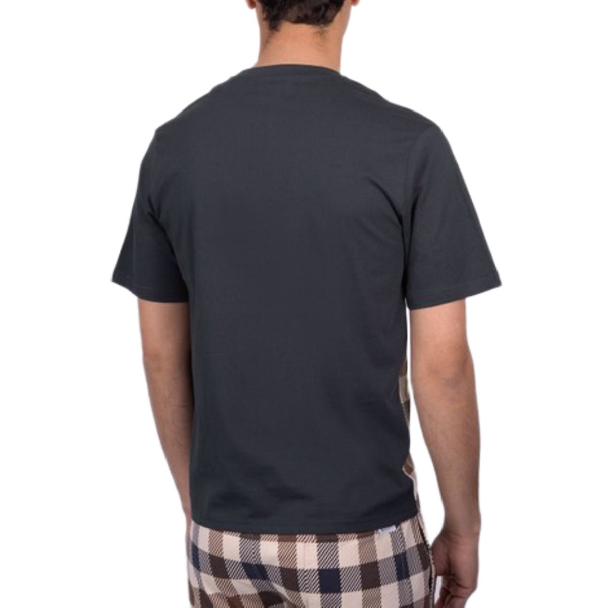 This Aquascutum Macro Iconic Pocket T-Shirt features a classic crew neck and short sleeves, crafted in a distinctive "Macro Check" pattern. Designed with a branded chest pocket on the left side, it combines timeless style with subtle brand detailing, making it a refined choice for a polished casual look.