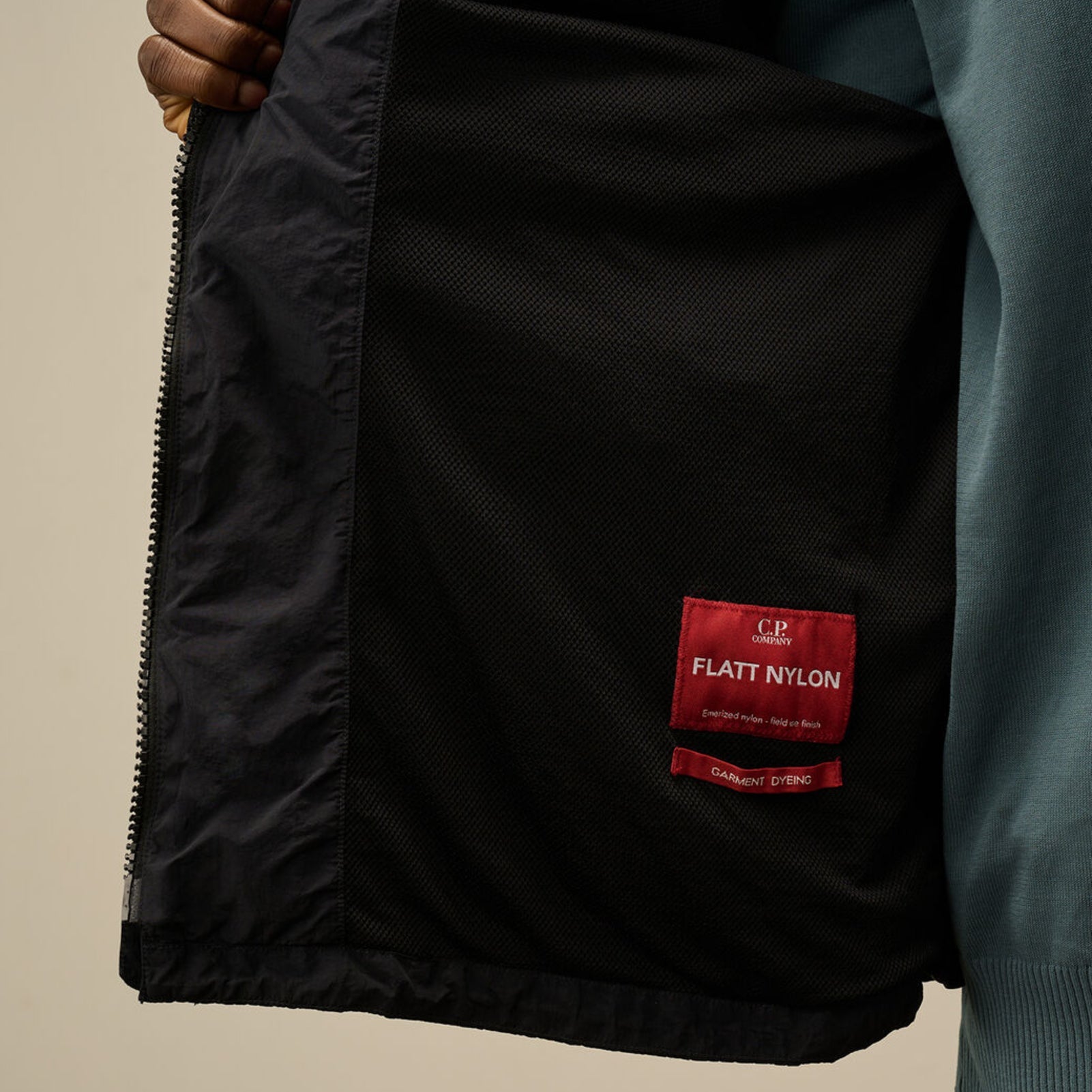 Crafted with CP Company's signature Flatt Nylon fabric, this goggle jacket offers a unique blend of durability and style. The emerized opaque nylon is treated with a light resin, creating a sleek and weather-resistant finish. Plus, the garment dyed anti-drop treatment ensures long-lasting wear. Stay protected and on trend with this innovative design.