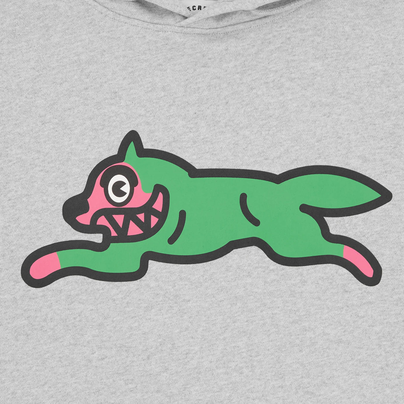 Stay comfortable and stylish with our Ice Cream Running Dog Hoodie. Made with 100% cotton loopback material, this regular fit hoodie features a drawstring hood, kangaroo pouch, and a screen print running dog graphic. Complete with iconic IC signet at the back neck.