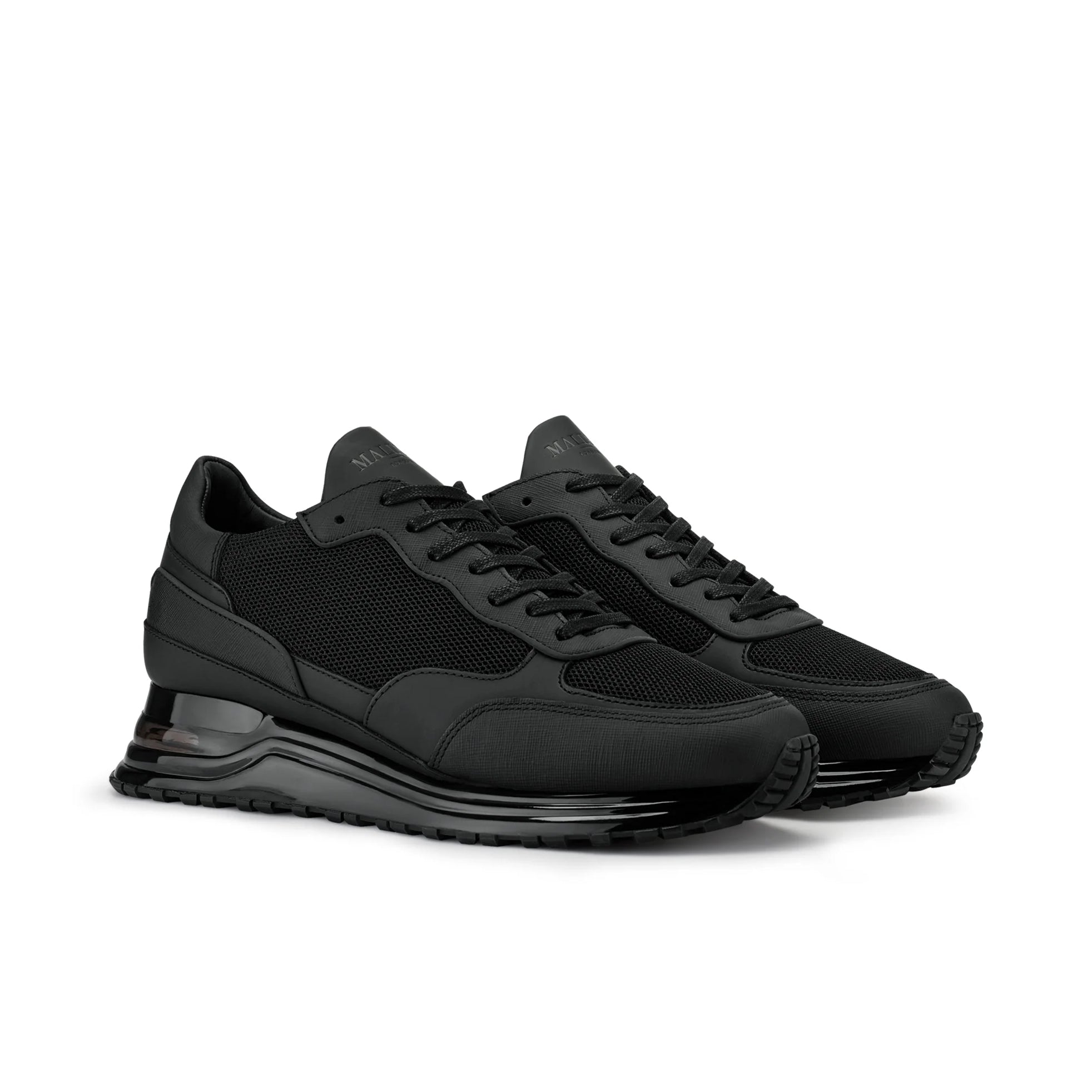This sleek Mallet Knox Gas Saffiano features a combination of recycled black mesh, matt black leather, and durable Saffiano materials, creating a unique and clean design. The black gas midsole and tread are complemented by a black gloss heel clip, delivering superior cushioning and traction.