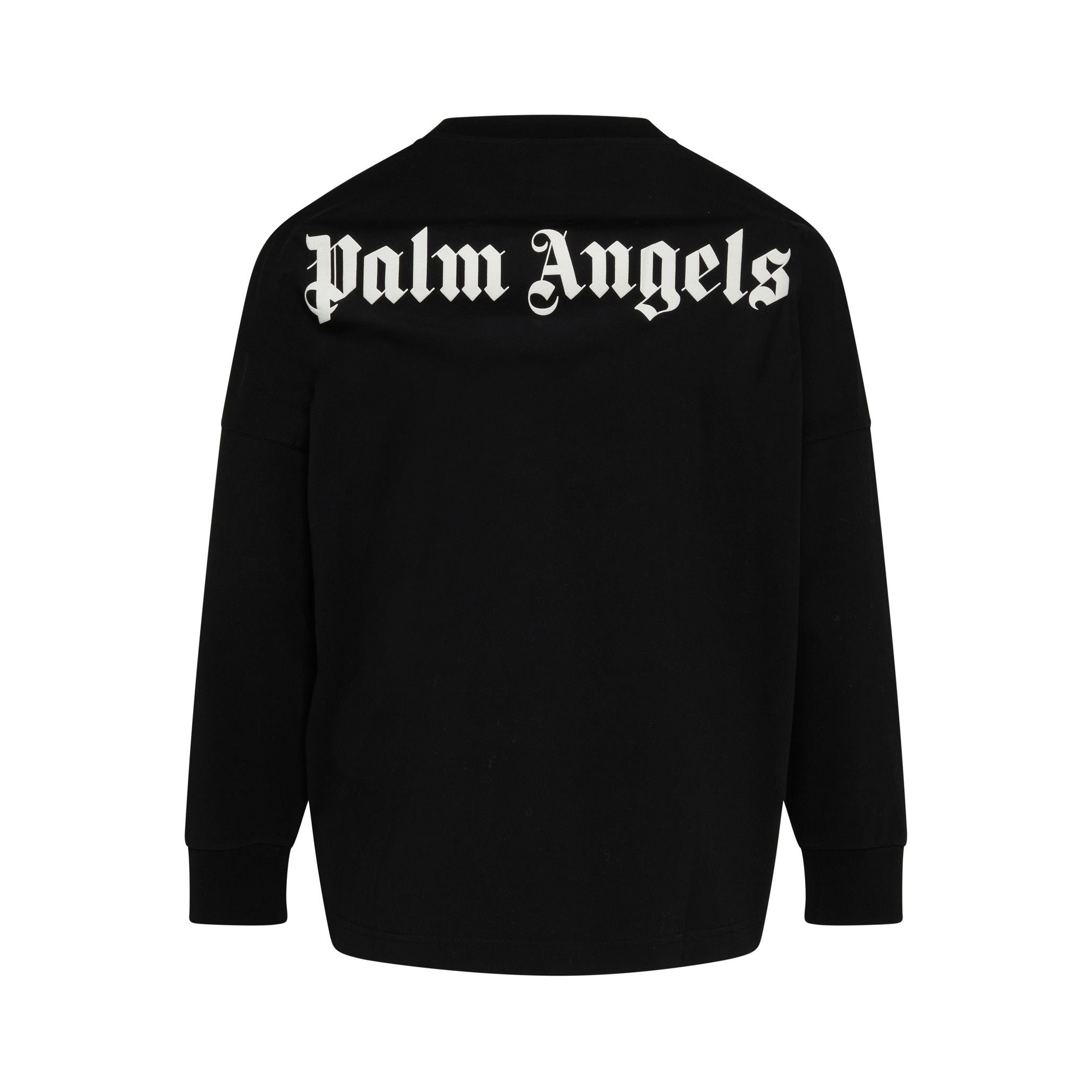 This Collar Logo Long Sleeve T Shirt from Palm Angels is ideal for incorporating high-end style into your everyday look. Crafted in pure cotton, it features a loose fit with ribbed trims for comfort. It's finished off with the brand's signature logo on the front neckline and back for a modern feel.
