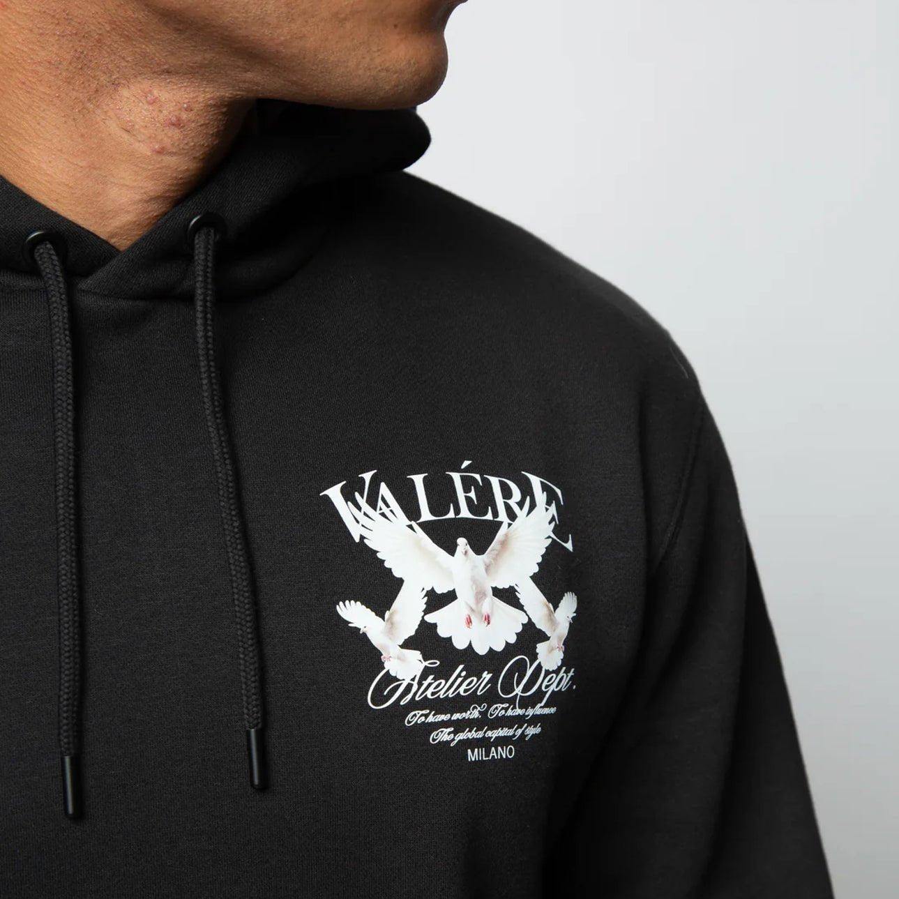 The Valere Pertuso Hoodie features a ribbed cuff and waistband for a comfortable fit. Made with a blend of 70% cotton and 30% polyester, and brushed back fleece for added warmth and softness. The branded digital print adds a unique touch. 300GSM ensures durability and quality.