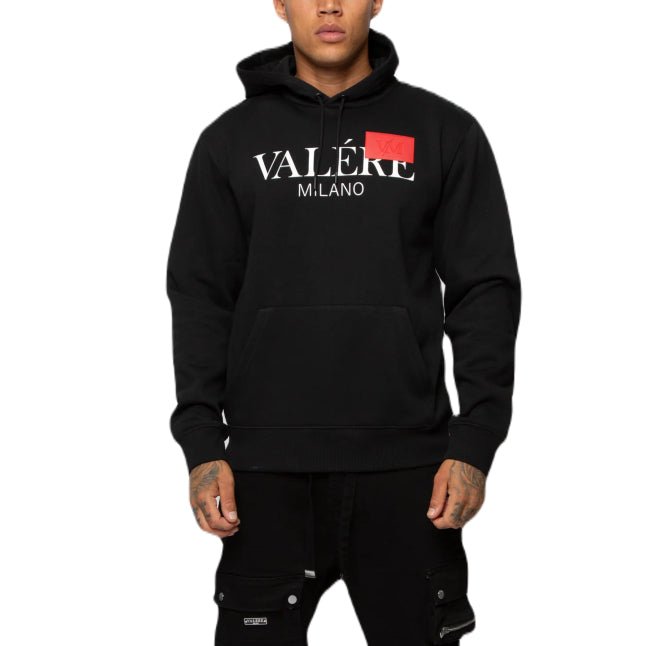 Stay warm and comfortable in the Valere Veneto Hoodie. With a regular fit and brushed back fleece, it's perfect for everyday wear. The ribbed neckline, cuffs, and waistband add a touch of style and the flat & high build branded print gives it a unique look. Made with 300GSM fabric for durability and warmth.