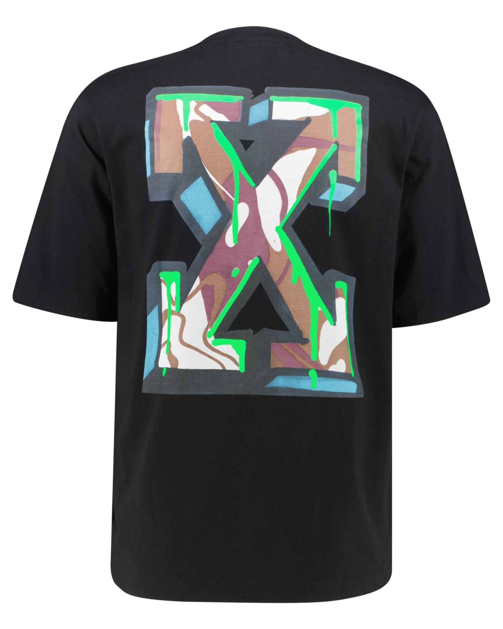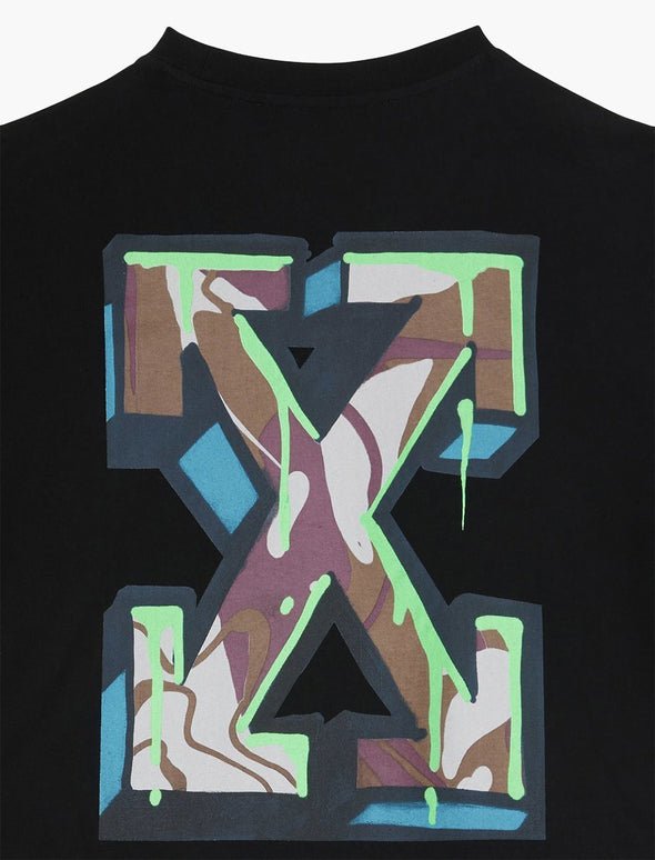 - Arrow motif in graffiti design at the back