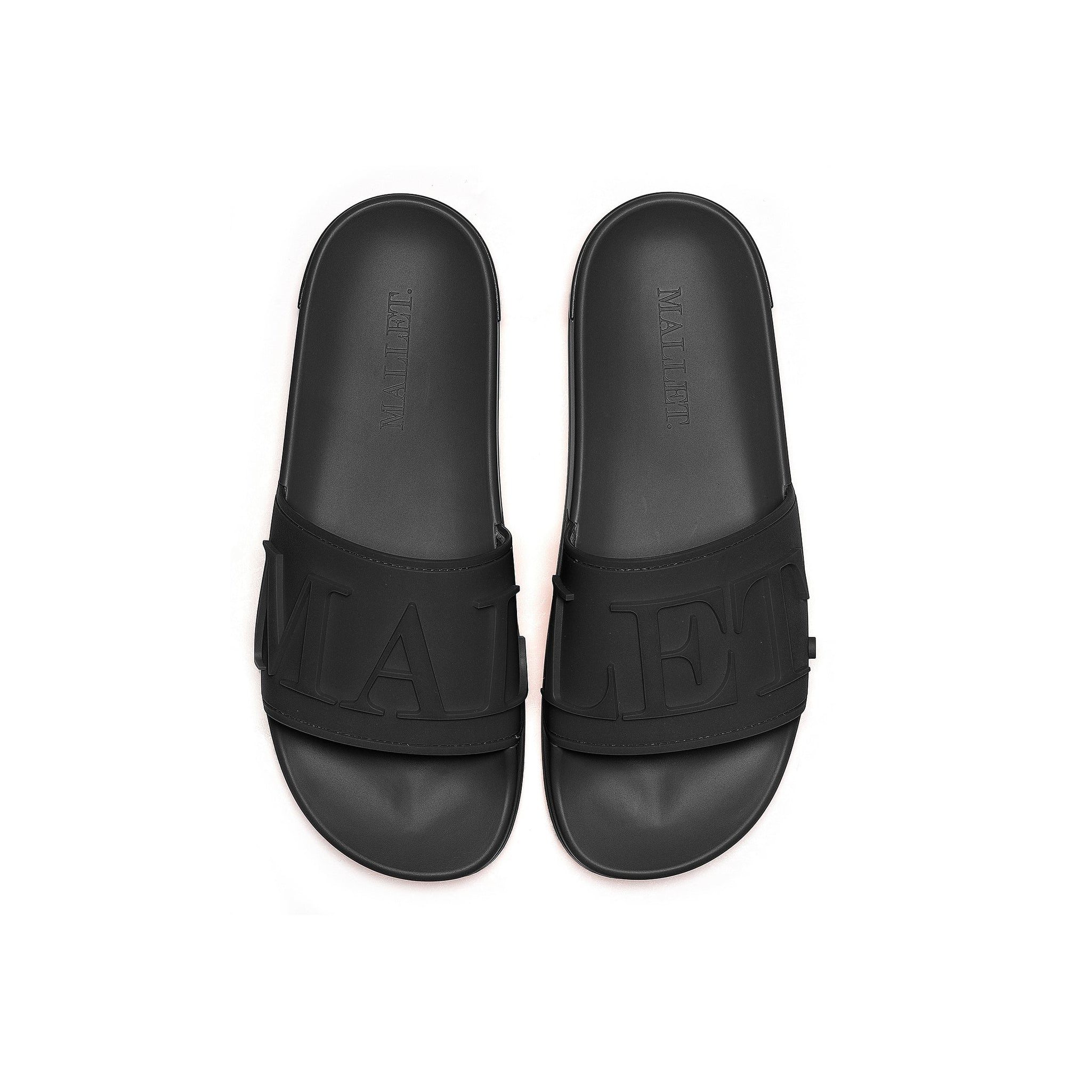 Add a touch of style and class to your poolside or beach look with our 'Slide Split' Triple Black sliders. Featuring a matt black heel clip and our iconic logo, these beautifully crafted sliders showcase premium quality with a modern twist for our mallet fans.