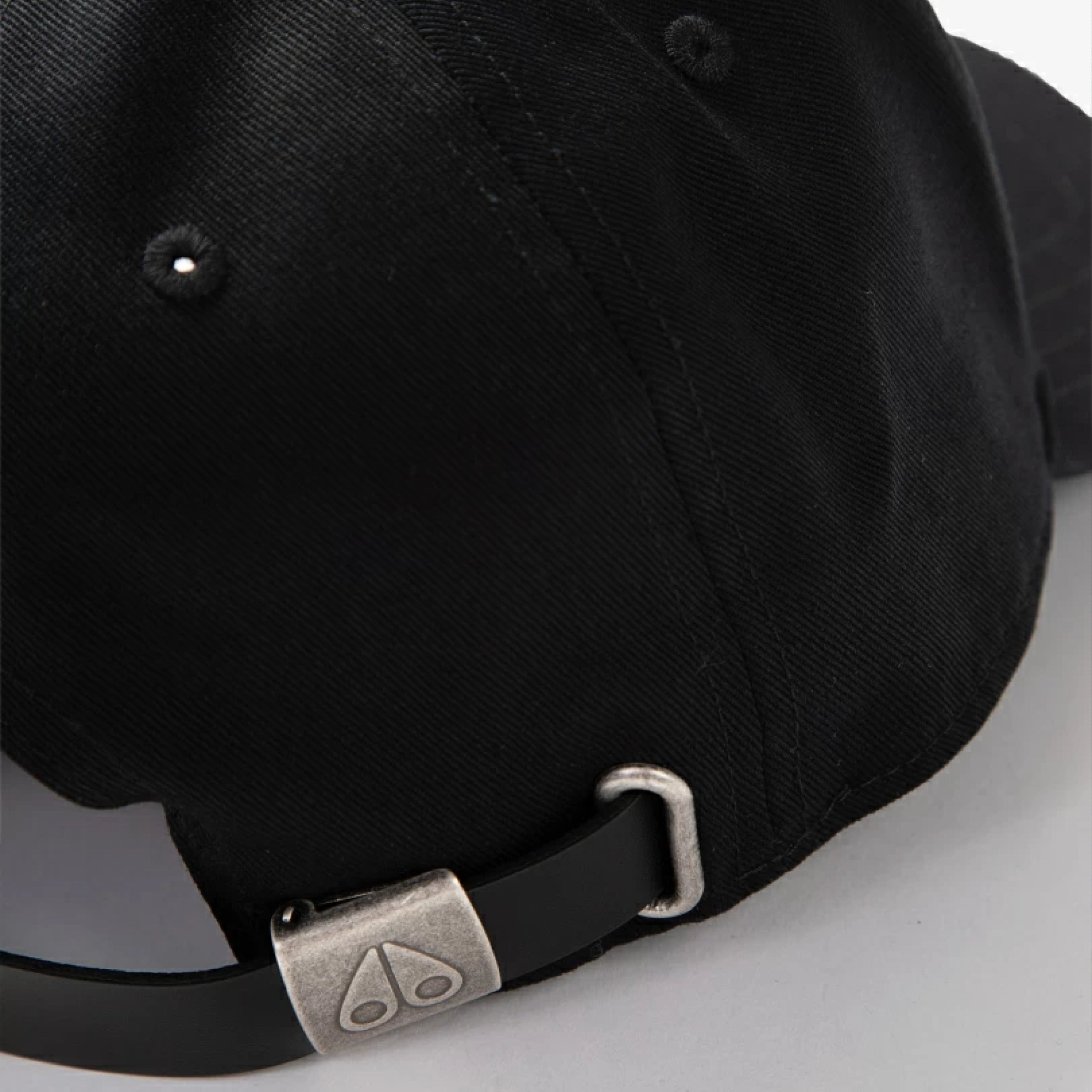 This Moose Knuckles Logo Icon Cap is expertly crafted with a cotton twill body and adjustable leather back strap for comfortable fit, plus classic 6-panel construction and breathable embroidered eyelets. Finished off with a polished metal Icon logo, it's the perfect stylish accessory for any outfit.