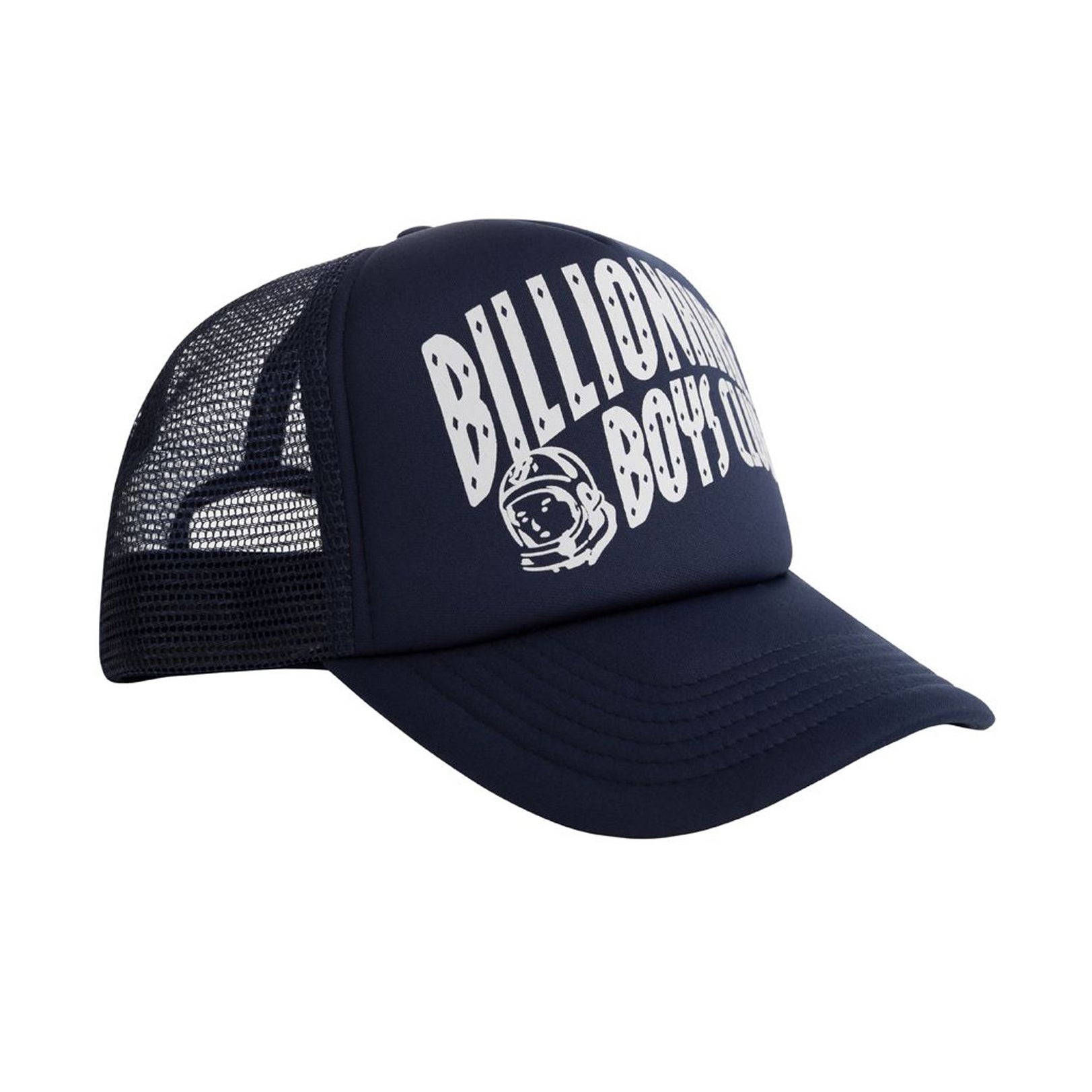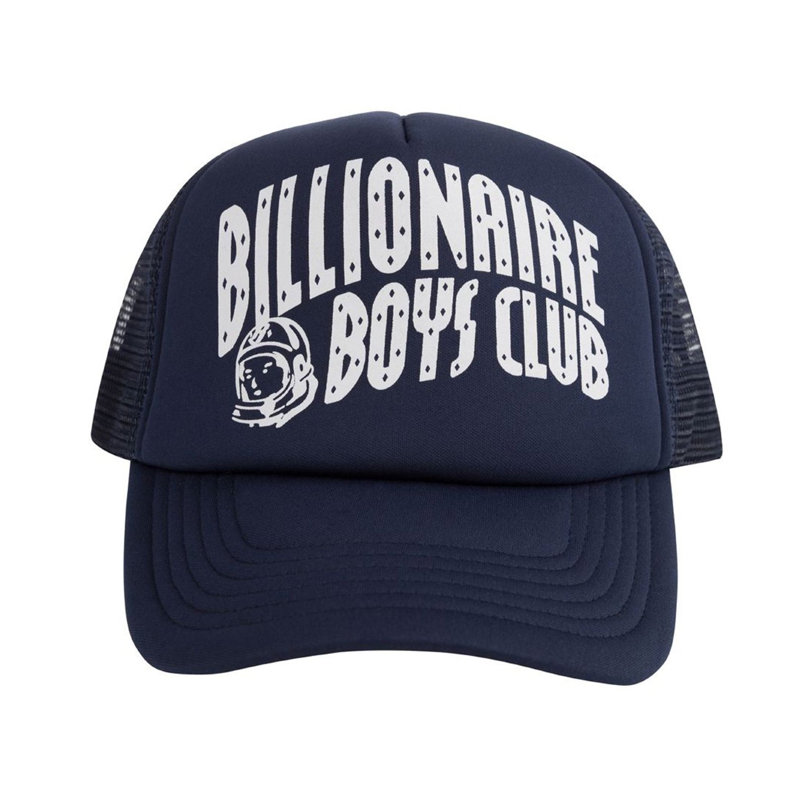 This navy blue BBC Navy Arch Logo Trucker Cap is crafted with breathable mesh backing and 100% polyester construction for all day comfort. The iconic Billionaire Boys Club logo and adjustable snapback strap ensure a perfect fit. Padded visor provides extra protection from the elements.