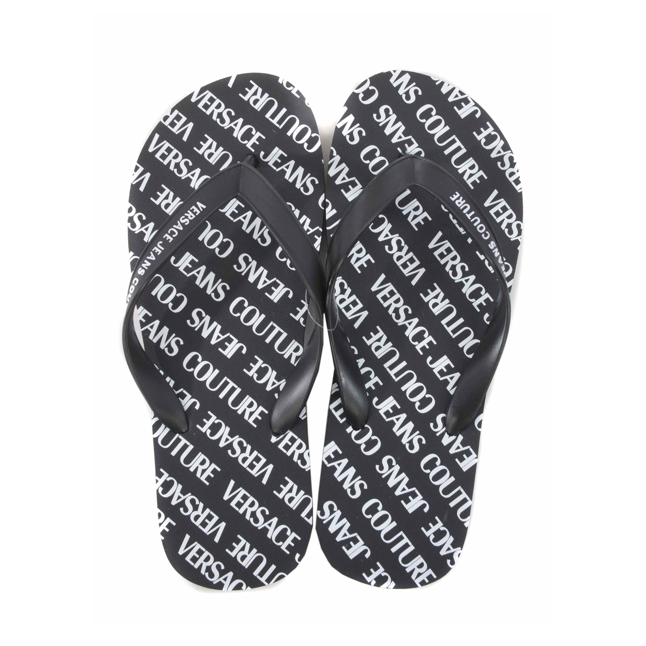 Walk on the wild side with Versace E0YWASQ7 Rubber Flip Flops from the iconic Versace Jeans Couture brand. These chic flip flops feature a comfortable and durable rubber construction, perfect for everyday wear or lounging poolside. Show off your fashion-forward style with every step!